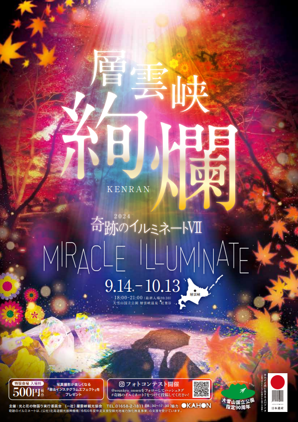 日本一早い紅葉 を告げる大雪山の麓層雲峡温泉紅葉谷で
