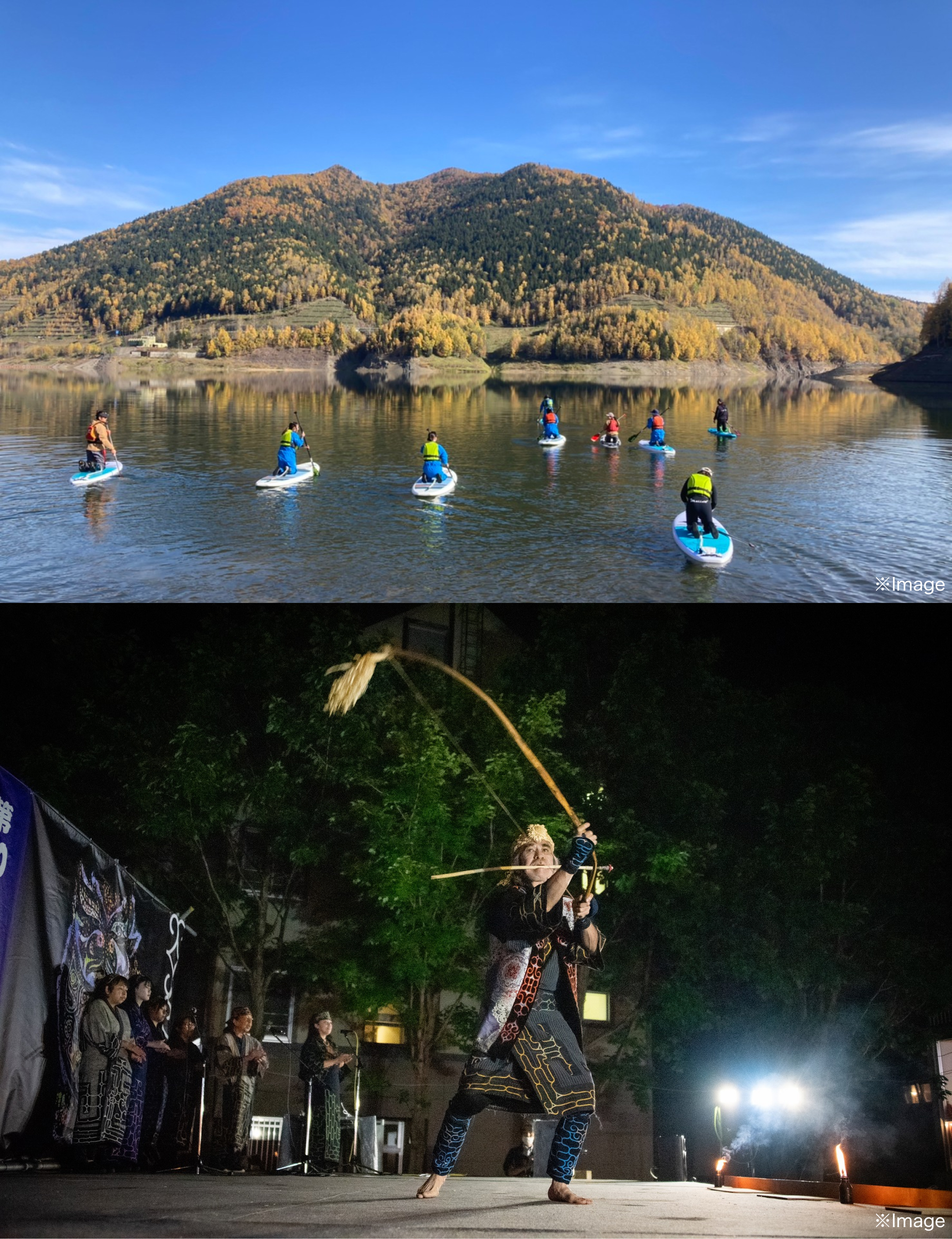 대자연과 일체가 되는, 최초의 개최가 되는 피싱 SUP 체험!댐 호수 위에서 절경을 즐기면서 기분 좋은 바람과 수면의 파문으로 치유됩니다。자연 속에서 피싱을 즐기고 대자연과 일체가 되는 체험을 제공합니다。
